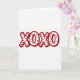 This greeting card features the large text “XOXO” centered on a wide white background. The letters are white inside with thick red outlines, making the message easy to spot right away. Inside each X and O, there’s a repeating pattern of many small red hearts, neatly spaced like a little heart collage. The red-and-white color pairing feels classic for Valentine’s Day and keeps the focus on hugs and kisses ❤️. The “XOXO” lettering looks like chunky, stylized print, and it sits right in the middle of the front. The design feels sweet and friendly, so it works for a partner, a close friend, or anyone you care about 🥰. It also has a slight textured look in the red areas, which makes it feel extra thoughtful to give.