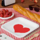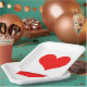 Gedruckt mit einem großen roten Herzmuster in massivem weißem Hintergrund.