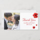 Hochzeit Danke, dass Sie eine Fotokarte mit rotem Hibiskus haben. Fügen Sie Ihr Lieblings-Hochzeitsfest-Foto und Ihre Party-Details hinzu. Sie können Textfarbe, Schriftart, Größe und Position leicht ändern, indem Sie auf die Schaltfläche Anpassen klicken. Sie können auch die Farbe der vertikalen grauen Linie ändern.