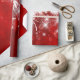 Ein festlicher Urlaubshintergrund weist einen Farbverlauf von weiß oben bis tiefrot unten auf. Der obere Teil ist mit weißen Schneeflocken und wirbelnden dekorativen Elementen geschmückt, wodurch ein Schneeeffekt entsteht. Frische Sterne und knackige Kreise verteilen sich über das ganze Bild und verleihen dem Bild ein zauberhaftes und feierliches Ambiente. Das Gesamtbild bietet ein Weihnachts- oder Winterthema mit einem Fokus auf Licht und Schimmern vor einer reichen, warmen Kulisse.