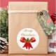 Red Holly Bow Frohe Weihnachten oder glückliche Fe Runder Aufkleber