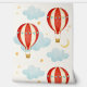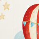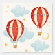 Niedliches Kinderzimmer-Muster mit rot gestreiften Heißluftballons, sanft blauen Wolken und Sternen.