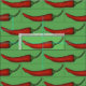 Das Gewebe zeigt eine originale Marker-Abbildung von Zeilen mit roten Cayenne-Chili-Paprikaschoten, die auf einem grünen Hintergrund gedruckt sind.