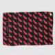 Dieses neuartige Design hat einen roten, heißen Chili, der sich in ein lustiges Essmuster wiederholt. Der Text zum Hinzufügen Ihres Namens oder Monogramms, ist in weiß, auf einem schwarzen Hintergrund Kies.