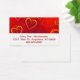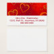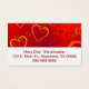 Ein rotes Design mit orangen und gelben offenen Herzen.