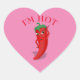Ein roter und scharfer Pfefferkarikaturencharakter. Originelles Design. Version mit anpassbarem Text und Hintergrundfarbe in Rosa. Dieser Aufkleber kann in Saucenflaschen und anderen heißen Lebensmitteln verwendet werden. Zum Spaß und als Warnzeichen.