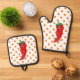Red Hot Pepper Diva Orange Polka Dots Ofenhandschuh & Topflappen-Set