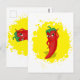 Ein roter und scharfer Pfefferkarikaturencharakter. Originelles Design mit gelbem Splash Hintergrund. Benutzerdefinierte Postkarten. Geschenkidee.