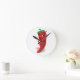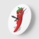 Ein roter und scharfer Pfefferkarikaturencharakter. Originelles Design. Maßgeschneiderte Wanduhren. Geschenkidee.