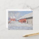 Eine schöne Kunstpostkarte von Claude Monet (1840-1926), ein französischer Impressionist mit dem Titel Red Houses at Bjornegaard in the Snow, Norwegen (1895). Eine skandinavische Winterlandschaft von einer Pferdestall und einem roten Haus im Schnee.