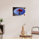 Ein Poster mit einem roten Ibis auf blauem Hintergrund. Das Foto des wunderschönen Vogels wurde im Londoner Zoo aufgenommen. Die Zusammensetzung des Posters wurde in Fotoshop CS3 gemacht