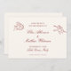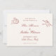 The save the date card features an off white background, offering a serene and classic canvas that enhances the minimalist design. The elegant dark red font, inspired by vintage calligraphy, adds a touch of sophistication and warmth. This carefully selected typography complements the artistic elements, ensuring your wedding details are presented with style and clarity.