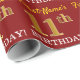Red, Imitation Gold Look "11. GEBURTSTAG" Geschenkpapier