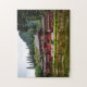 Schönes und ruhiges rotes Jigsaw-Puzzle aus japanischem Tempel.