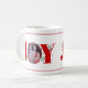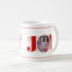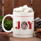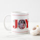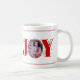 Red Joy mit Beeren Weihnachts-Foto Kaffee Tasse. Es zeigt das Wort "JOY" mit roten Beeren und Grün, während anstelle des Buchstabens "O" Ihr Foto steht.