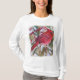 Schöner Roter Kardinal mit schwarzem Akzent, auf einem grünen, grünen, braunen, schneebedeckten, mit roten Beeren umsäumten, schneebedeckten Ast
