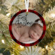 Dieses niedliche Weihnachtsschmuck ist mit einem Foto-Thema für den wahren Sake besetzt. In der Mitte befindet sich ein Baby-Foto, das Sie individuell gestalten können, um Ihr eigenes Foto oder ein anderes Wunschbild Ihres Babys einzubinden. Der Titel "Erste Weihnachten" wird in einem eleganten Script-Schriftart an die verlassen gedruckt, gefolgt von einem Beispieljahr. Der Rahmen ist mit einem rustikalen karierten Rahmen versehen.