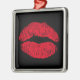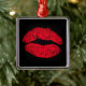 Red Kissing Lips auf schwarz Ornament Aus Metall