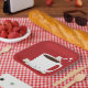 Hot-Chocolate-Papier-Teller zeigen eine lächelnde Tasse von heißem Kakao mit einem Bonbons und mehrere fröhliche Marshmallows auf einem roten Hintergrund. Red Lächeln heiße Schokolade Weihnachtszeitung Teller Sweetsham Food Art | ©Melissa Patton - Künstler/Illustrator