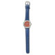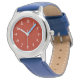 Ihr Kind wird einen guten Geschmack und eine Touch Patriotismus mit dieser fetten Armbanduhr mit rotem Gesicht, blauer Band und weißen Zahlen zeigen.