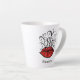 Mode- und Make-up-Liebhaber personalisierte latte Tasse mit einem seltsamen lips gotischen Design mit einer Tinte zeichnend von einem Mund mit rotem Lippenstift mit weißen Punkten, seltsamen Wirbel und personalisierbaren Namen dekoriert.