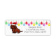 Red Long Hair Dackel Cartoon Weihnachtsanschrift Labels für Dackel Fans!! Eine Niedliche Dackel sitzt wie ein Model mit seiner Weihnachtsmannmütze!! Bunte Ornamente im Hintergrund. Sie können Text und mehr anpassen! Einzigartige und lustige Hundekunst von Naomi Ochiai aus Japan.