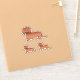 Desteis originelle Cartoon-Illustration einer niedlichen langen haarroten Fell Farbe Dackel züchten Hund. Das Design wird dreimal auf dem Blatt in zwei verschiedenen Größen platziert. Es gibt eine größere und zwei kleinere.