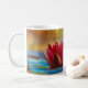 Red Lotus Blume über blaues Wasser Spirituelles Zi Kaffeetasse