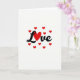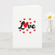 This card features the word “Love” in smooth black cursive across a white background, with the “o” replaced by a large red heart at the center. Around the main word, several smaller red hearts are scattered like little notes floating in the air. The big heart looks full and rounded, and the smaller hearts add a light, happy feeling without taking attention away from the message. The text sits prominently in the middle of the card, and the black lettering stands out clearly against the white space. With only black, white, and red, the design feels focused, warm, and easy to take in at a glance. It gives a simple, romantic look that works for a partner, close friend, or anyone you care about 💕❤️.