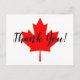 Erstellen Sie Ihre eigene leuchtend rote kanadische Fahne Blatt Ahornblatt danke Ihnen Postcard für eine Hochzeit oder andere Veranstaltung. Sie können den hübschen Kalligrafietext ändern. Rot, Weiß und Schwarz danke Postcard.