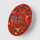 Red Mayan Sun Disk Aztec History Clock Runde Wanduhr
