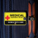 This high-visibility yellow medical equipment tag is an essential travel accessory for anyone flying or traveling with sensitive healthcare devices. Featuring a bold "Medical Equipment Inside" warning and a universal red cross symbol, this tag instantly alerts baggage handlers, TSA agents, and airline staff to treat your luggage with extra caution.