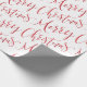 Weihnachtsgeschenkpapier bietet moderne Kalligrafie fröhliche Weihnachtsschrift in rot und weiß.