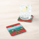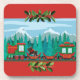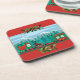 Frohe Weihnachtsbahn mit rotem Hintergrund und dem kleinen Scotty Hund, der auf dem Zug mitfährt.