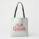 Tote Tasche mit einem extravaganten typografischen Design mit einem festlichen Schriftart in Rot, der frohe Weihnachten sagt.