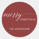 Moderner Feiertag roter Aufkleber mit den Worten "Frohe Weihnachten". Personalisiert, indem Sie Ihren eigenen Text hinzufügen.