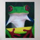 Roter Mit Augen Baum Frog ist ein kühner Teil eines mit Augen, roten Baumfrosches, der sich an den Narben eines Blattes klammert. Frösche sind Symbole der Reinigung, Auffüllung, Anpassung und des Glücks. Dieses Objekt ist ein originales 24" x 30" Acrylgemälde auf 2" gewickelten Leinwänden (die Malerei wird auf den Rändern fortgesetzt, kein Rahmen benötigt) und beinhaltet eine Echtheitsbescheinigung. Ich brauchte ungefähr 30 Stunden, um es zu beenden. Ich habe es 2008 unter meinem Geburtsnamen beendet.