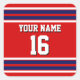 Red mit Navy White Stripes Team Jersey Quadratischer Aufkleber