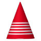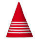 Rot mit weißen Streifen Clown Geburtstagsparty Papier Hut aus Papier. Einfaches und niedliches Kirschrot und helles weißes Party.