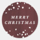 Created to coordinate with the "Snow Globe" holiday card, this festive sticker features the greeting "Merry Christmas", and a handful of tiny dots that create the illusion of snowfall. There is a subtle painterly texture in the background. These stickers are perfect for labeling gifts and party favors, or they can be used to seal holiday envelopes.