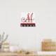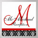 Red Monogram Damask Wedding Empfang Poster