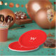 Trendy Personal Party Paper Teller mit rotem Hintergrund, großes zentriertes Monogramm und assoziiertem Namen. Saubere, einfache minimalistische Typografie. Vollständig personalisierbar.