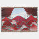 Abstraktes Landschaftsdesign in verschiedenen Rottönen mit einem Mondschein, Hügeln, Bäumen, Wolken und Vögeln.