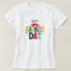 The design consists of a vibrant sign proclaiming "Happy Father's Day" in bold, colorful letters. Between the words "Happy" and "Father" is a funny red mustache, which adds a touch of humor and celebration to the composition.