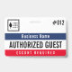 Der Besucher durchläuft Abzeichen mit einem einfachen Design in Schwarz, Weiß, Marineblau und Rot. Autorisierte Gast ist über das Abzeichen geschrieben, aber Sie können die Formulierung ändern, um Ihre Bedürfnisse Anzug. Personalisieren Sie weiter mit Ihrem Firmenlogo und dem Firmennamen.