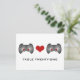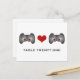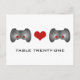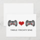 Die Niedliche Gamer Wedding Tischnummer Postcard mit Videospiel-Controllern mit roten Tasten zeichnet sich durch ihren eigenartigen und geeky Chic aus. Ein Herz in der Mitte verbindet die beiden Controller. Diese nerdige Tischkarte ist perfekt für das Spielpaar. Einfach anzupassen, fügen Sie einfach die passende Tischnummer(en) in das Textfeld ein. Klicken Sie auf "Anpassen", um weitere Personalisierungsoptionen zu erhalten.