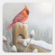 Red Northern Kardinal Bird auf dem Zaun Wasserfarb Quadratischer Aufkleber