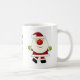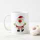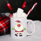 Die niedliche Tasse für den Urlaub bietet einen skurrilen Weihnachtsmann mit einer großen roten Nase und hellgrünen Fingern. Bearbeiten Sie den mittleren Text mit der Beschriftung "Ho Ho Ho". Sie haben die Wahl zwischen Stilen und Farben.
