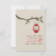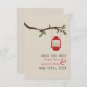 Eine Hochzeit im Freien speichern Sie das Datum mit einem Thema Wildnis / Camping mit einer Abbildung einer roten Öllampe, die von einem Zweig mit grünen Blätter hängt. Personalisieren Sie den Text mit Ihren Informationen.