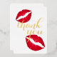 Hübsch Dankeschön an Karte mit rot ombre Lippenstift Kiss Drucken. Man kann die digitale Kunstgrafik verschieben, die die Lippen kreiert. Auf der Rückseite können Sie den Stil, die Größe und die Farbe des Schriftartes anpassen. Sie können auch die einfache weiße Hintergrundfarbe ändern.